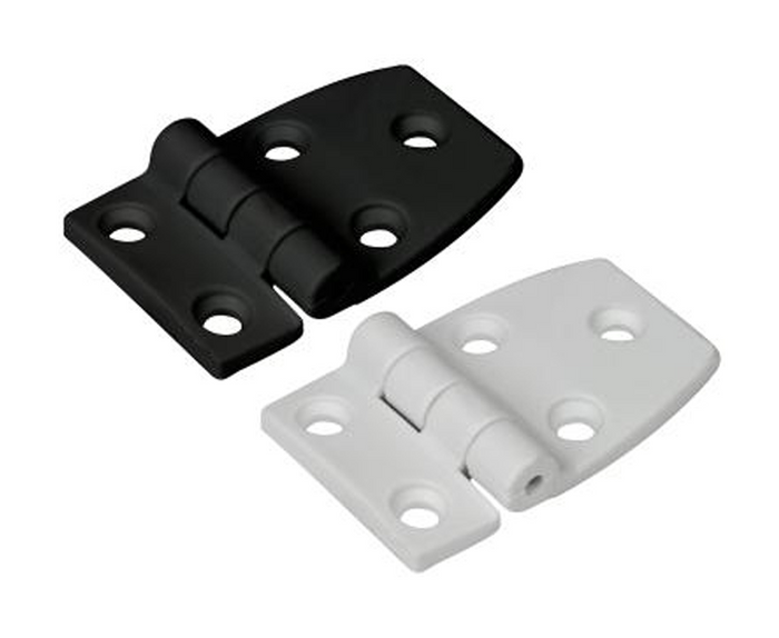 Sea-Dog White Nylon Door Hinge 35mmx57mm Short Side Door Hinges are great for interior and exterior applications such as cabinets, hatches, folding tables, or seats where mounting space is tight. Constructed of UV resistant injection molded fiberglass nylon with a corrosion resistant stainless steel pin. Installs with five #8 FH fasteners (not included).