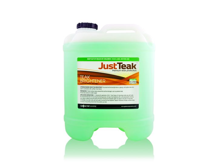 The JustTeak Teak Brightener is part 2 of a 2-part cleaning system, expertly designed to thoroughly clean and restore the natural look of your teak in 2 easy steps. Its marine-grade formulation quickly and safely transforms weathered teak back to brand new without the need for sanding or harsh scrubbing.