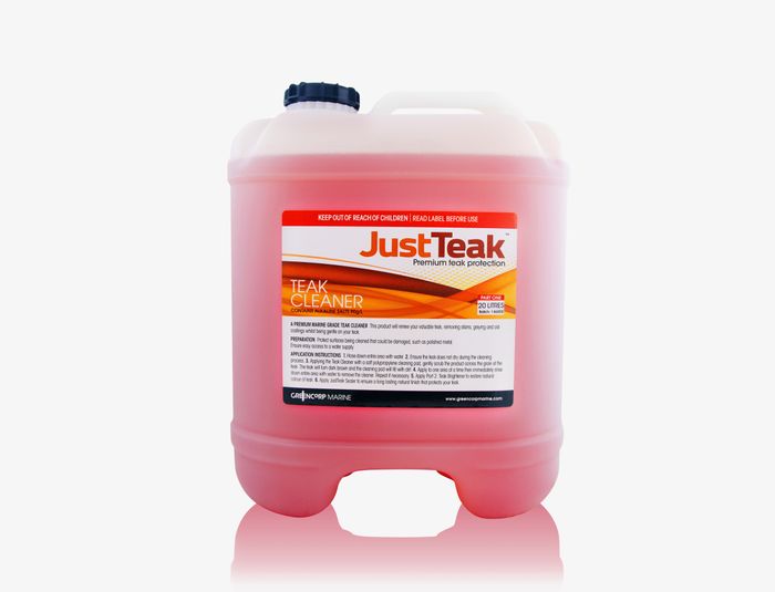 The JustTeak Teak Cleaner is part 1 of a 2-part cleaning system, expertly designed to thoroughly clean and restore the natural look of your teak in 2 easy steps. Its marine-grade formulation quickly and safely transforms weathered teak back to brand new by removing dirt and deposits without the need for sanding or harsh scrubbing.