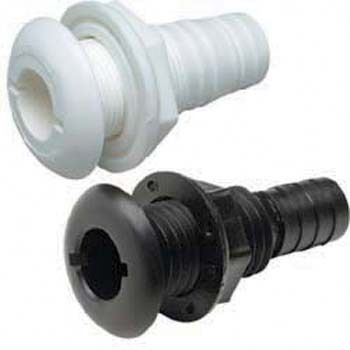 SEACHOICE 18011 THRU-HULL CONN-WHT PLAS - 1/2 inch. moulded plastic with broad flange, use in place of stainless steel thru-hull