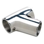 SEACHOICE 38051 60 DEG UNIV TEE 7/8 S/S. Cast 316 stainless steel polished. 60 degree Tee fits 7/8 inch OD tube. With 1/4 inch; x 28 lock screws.