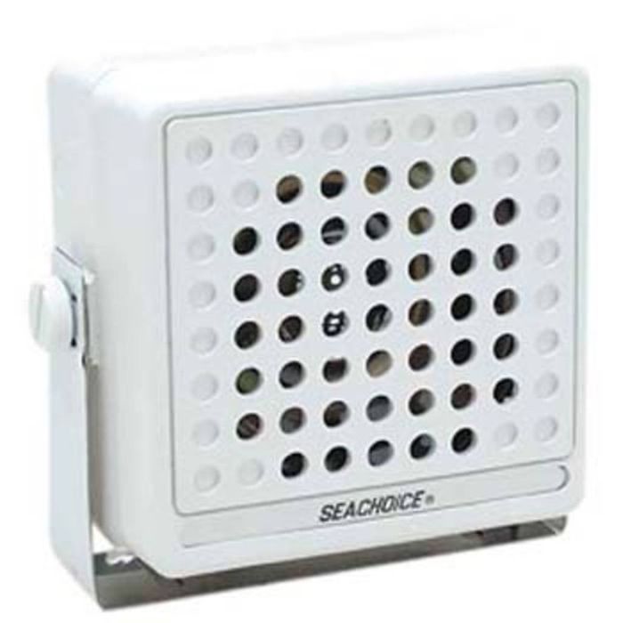 SEACHOICE 19751 WHITE EXTENSION SPEAKER. White, water resistant, 5 watt speaker compatible with all VHF radios. Comes with 2.9m of cable, plug, stainless steel mounting bracket. 127mm x 127mm.