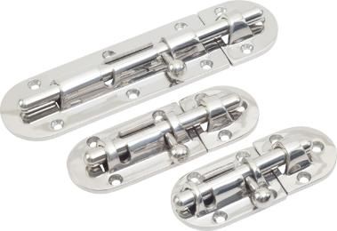 Sea-Dog Barrel Bolt. large. These Barrel Bolts provide additional security as either a primary or back-up locking system. Ideal for use on doors, gates, and cabinets. Appropriate for vertical, horizontal, left, or right-hand applications. In vertical use, the notch in the barrel holds bolt in locked position. Constructed of corrosion resistant investment cast 316 stainless steel. Surface mounts with FH fasteners (not included).