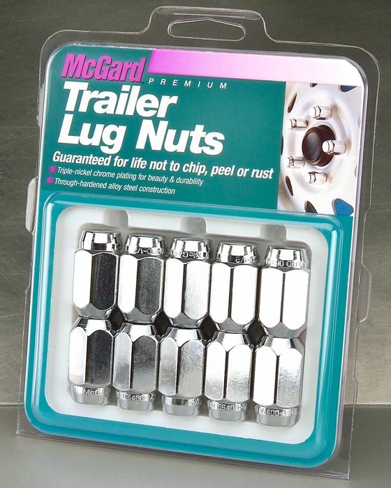 MCGARD 74043 TRAILER LUG NUTS 1/2-20. For boat trailers with steel or alloy wheels, simply replace one of the lug nuts with a McGard wheel lock. Wheel locks and lug nuts are machined from high quality steel, throughly hardened and then triple nickel chrome plated.