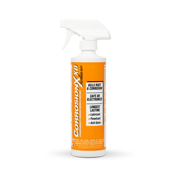 CorrosionX XD penetrates existing rust and corrosion, displaces moisture and prevents electrolysis. It leaves a non-hardening, self-healing coating for maximum protection against moisture intrusion, while providing outstanding, long-lasting lubrication for all moving parts.